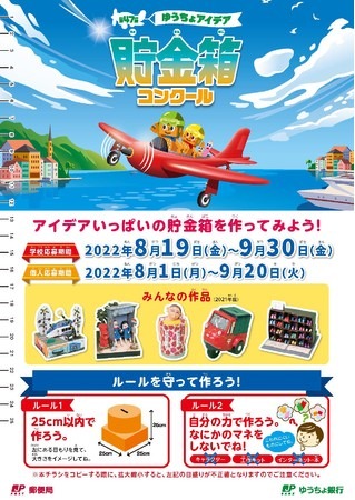 株式会社ゆうちょ銀行(東京都千代田区大手町2-3-1、取締役兼代表執行役社長 池田 憲人)では、「ゆうちょアイデア貯金箱コンクール」を今年も開催いたします。