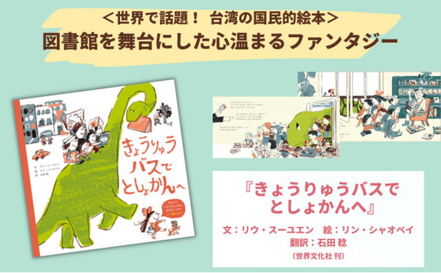 図書館を舞台に繰り広げられる、子どもたちときょうりゅうくんの心あたたまるファンタジー。もしも、恐竜バスの「移動図書館」があったら?『カタカタカタ おばあちゃんのたからもの』(宝迫典子訳/ほるぷ出版)で産経児童出版文化賞・翻訳作品賞を受賞した、画家のリン・シャオペイが描く、心にぽっと読書の灯をともしてくれる作品です。