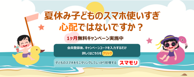 そんな中、家で夏休みの宿題や自由研究ばかりで退屈している子ども達の、スマホの使いすぎが気になる保護者のために、スマホを安全に管理できるスマートフォン管理アプリ「スマモリ」は、夏休み特別企画で1ヶ月半、無料キャンペーンを実施いたします。