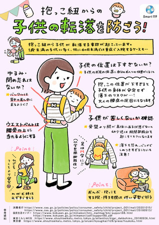 「抱っこひもからの子どもの転落に注意」