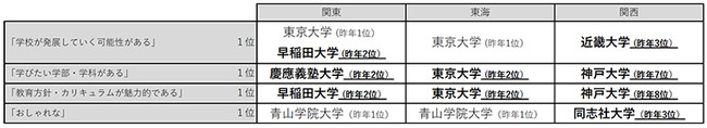 関東・東海・関西エリアの「大学のイメージ」ランキング