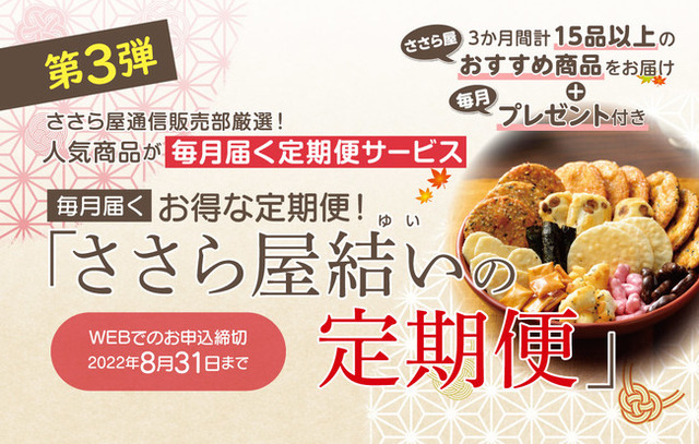 ささら屋 6か月間 毎月届く お得な定期便!ささら屋結いの定期便の受付開始 12月15日から 日の出屋製菓産業