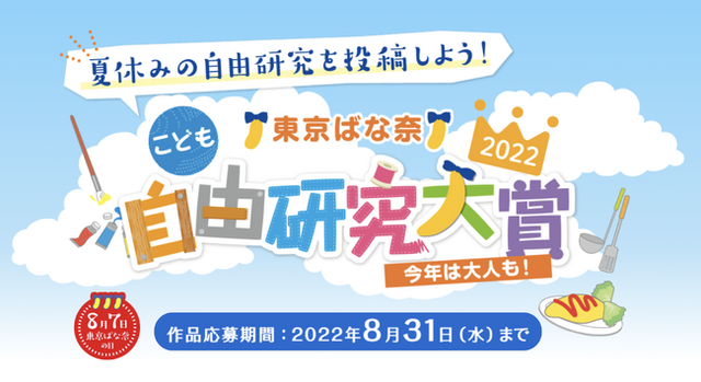 東京ばな奈がこども達の忘れられない夏休みの思い出になれたら。そんな願いから始まった『東京ばな奈こども自由研究大賞』。今年は大人部門も開催!こどもから大人まで、みんなの創意工夫を見せてください。