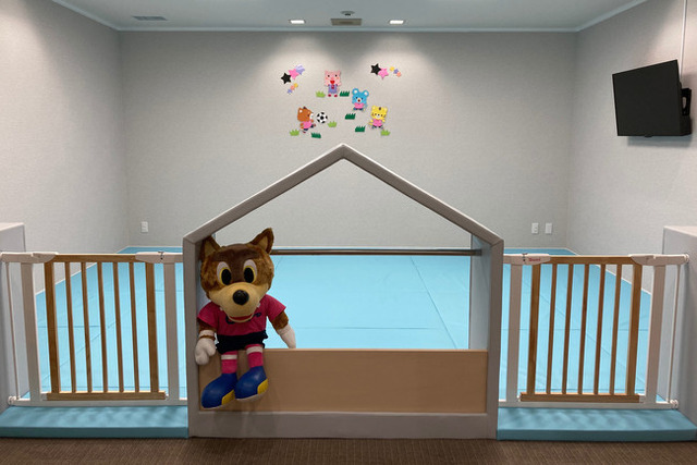 ファン・サポーターの中には、お子様から目が離せない、周囲のスタンドにご迷惑をお掛けするといった育児上の理由からスタジアム来場が叶わない皆様が少なくありません。そんな育児中の皆様にも気軽にスタジアムにご来場いただけるよう、昨年7月にサービスを導入したキッズプレイルームsupported by CRTM に加え、このたび株式会社ママMATEのご協力のもと託児サービスを新たに開始するに至りました。
