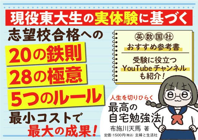 この本では、僕が東大に合格するまでに考えて実践した自宅勉強法をみなさんにご紹介します。ずばり20の鉄則と28の極意、そして布施川式5つのルールをあわせた53の方法です。もともとは偏差値50~60ちょっとだった僕が、偏差値70~80になることができた「実際に効果がある勉強法」ばかりですから必読です。勉強は難しいことと思われるかもしれませんが、実はうまくかいつまんでいけば、意外なほど楽をしながら切り抜けることができます。これから紹介していく「最低限の努力」の方法を活用して、最高の自宅勉強法で最高の結果を出せるようになりましょう!