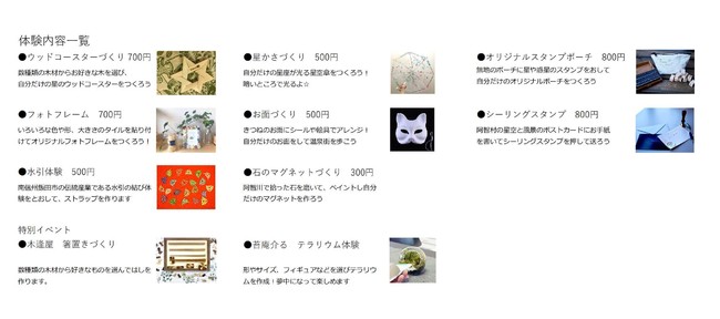 小さなお子様から大人まで楽しめる人気のクラフト体験10 種類が期間中に大集合!南信州阿智村ならではのも