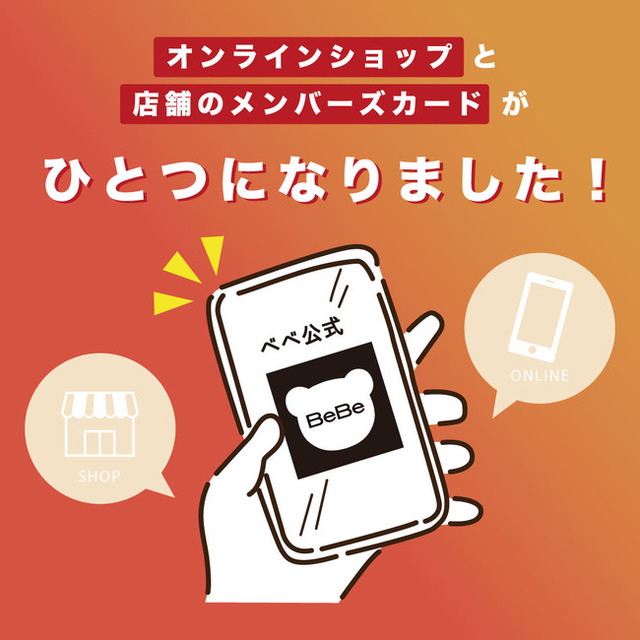 ※オンラインストアBEBE MALLの会員登録後に、お客様番号とバーコードが発行され、ポイントがご利用いただけます。