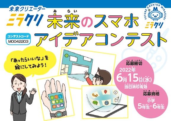 「未来のスマホ アイデアコンテスト」は、副教材で得た知識などをもとに子どもたちの豊かなアイデアを発揮する場として開催するもので、今回は「未来のスマホ」をテーマに、未来にあったらいいなという夢のスマホを募集。全国の小学生=未来クリエーターからたくさんの作品が集まりました。その中から「ソフトバンク賞」1名、「ミラクリ賞」1名、「未来賞」5名を選出しました。このうち「ソフトバンク賞」と「ミラクリ賞」の2作品をご紹介します。