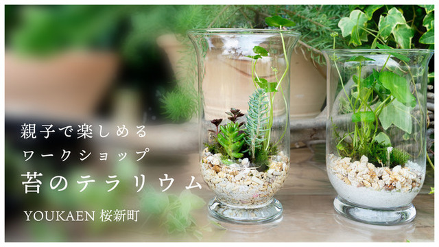 夏の水草「ウォーターマッシュルーム」と苔を使った、涼しげなテラリウムを作る親子参加型のワークショップを開催。