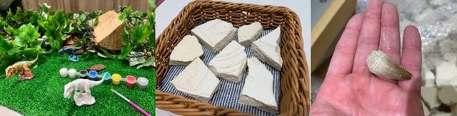 専用プランからのお申込みで、化石発掘セットと恐竜フィギュアが作れるペイントダイナソーを