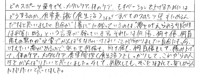 アスリート 羽生直剛さんの話を聞いた生徒の感想