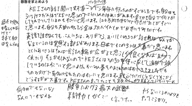 旅するクリエイターKeiさんの話を聞いた生徒の感想