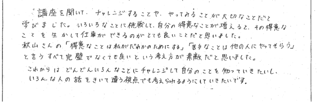 (参加した生徒の感想ノート 一部抜粋)