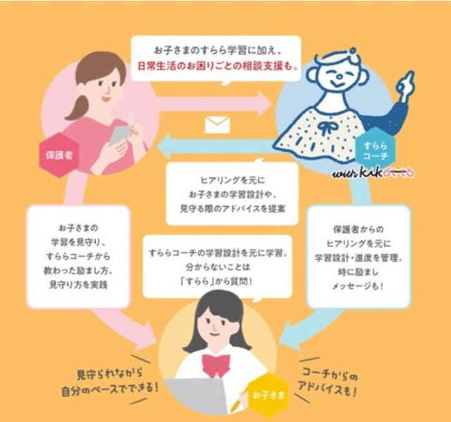 家庭学習用途で個人利用ができる「すらら」は、学習塾の先生を中心とした「すららコーチ」がアフターサービスとして生徒の学力、発達の特性に合わせた学習設計や、学習面でのお困りごとを支援してきました。現在、個人利用者の65%が不登校や発達障害で悩む方々で、日常生活のお悩みも相談を受けております。このことに対し、今後はより専門性を持った寄り添いができるよう、発達支援の専門家集団「ADDS」が提供するオンライン発達支援相談サービス「kikotto」と連携することで、日常生活から学習に関するお困りごとまで幅広く支援できるサービス「すららコーチ with kikotto」を提供いたします。