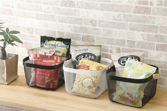 小物や食材、衣類やおもちゃなど、おうちの収納にかかせないアイテムとなっているのがバスケット。今回発売する「メッシュバスケット」は、ぬくもりを感じる木製の持ち手とアイボリー/ブラックのシンプルな2色のカラーリングで、様々なインテリアに馴染む収納アイテムです。メッシュ仕様で中身が見えて、通気性もよいため洗濯物を取り込む際にもお使いいただけます。実用性とデザイン性を兼ね備えた「メッシュバスケット」で、お部屋をおしゃれに整理整頓してみてはいかがでしょうか。