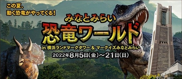 横浜ランドマークタワー(神奈川県横浜市/運営:三菱地所プロパティマネジメント株式会社)と、MARK IS みなとみらい(神奈川県横浜市/運営:三菱地所プロパティマネジメント株式会社)は、2022年8月5日(金)~8月21日(日)の夏休み期間限定イベント『この夏、動く恐竜がやってくる!みなとみらい 恐竜ワールド』を開催します。