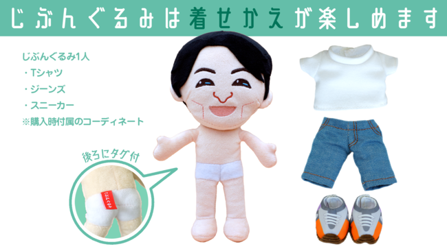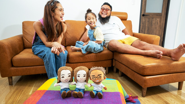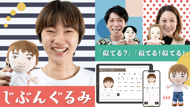 「じぶんぐるみ」は、お客様自身がWebサイト上でアバターパーツを組み合わせて似顔絵を作成し、それを元に「ひと型のぬいぐるみ」を作成しお届けする、今までありそうでなかったサービスです。大切な人へのプレゼントに、自分のSNSアイコン画像用に、旅行時の「ぬい撮り」写真遊び用に、用途は無限大。作った人も、もらった人も、それを見る人も、「似てる?」「似てる!」といった会話が生まれ、笑顔がこぼれます。