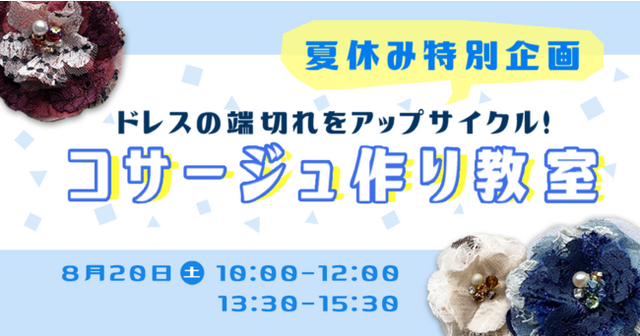 フォーマルウェアの東京ソワール(本社:東京都港区 代表取締役社長:小泉純一) では、限りある資源を最後まで無駄にしないアップサイクルの取り組みを広げる活動の一環として夏休み特別企画「 端切れで作るコサージュ作り教室」を有限会社アトリエ染花と合同開催いたします。