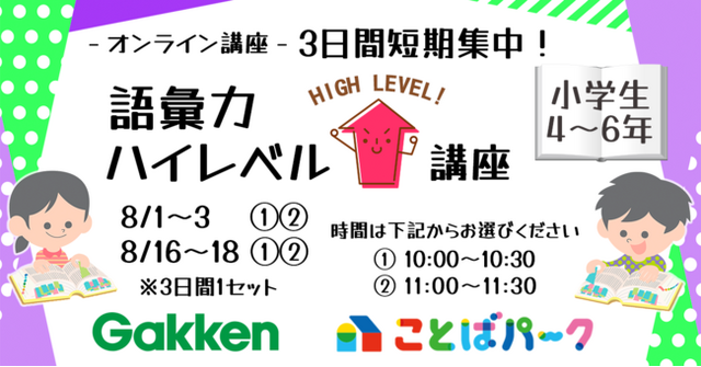 株式会社学研エデュケーショナルのオンラインサービス「ことばパーク」が、今年の夏、様々なオンラインイベントを開催します!