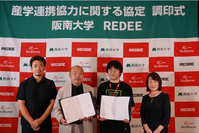 ゲームで学ぶデジタル教室「REDEE(レディー)」(所在地:大阪府吹田市、運営:レッドホースコーポレーション株式会社)は、この度、阪南大学(所在地:大阪府松原市、学長:田上博司)と互いの研究・技術分野を補完・強化することにより、地域社会への貢献、学生の教育、育成、探究・学習活動、地域・社会貢献等を目的として、産学連携・協力に関する協定を締結することとし、その調印式が7月19日(火)、REDEE内メインアリーナにて行われました。