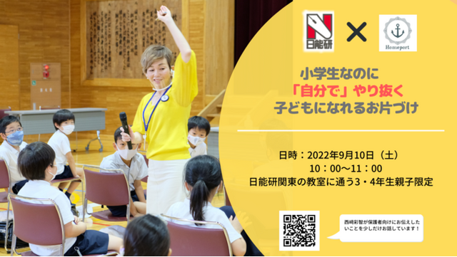 自ら片づけられる人を育て、家族みんなが帰りたいと思う家庭をつくるサポートをする、株式会社Homeport(代表:西崎彩智、本社:東京・港区、以下Homeport)は、片づけを通じて子供の非認知能力を鍛える親子セミナー『小学生なのに「自分で」やり抜く子どもになれるお片づけ』を日能研関東の教室に通う3~4年生とその保護者を対象に9/10(土)オンラインで開催します。
