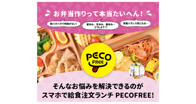 株式会社PECOFREE(本社:福岡県福岡市、代表取締役:川浪 達雄)は、株式会社テノ.サポート(本社:福岡県福岡市、代表取締役:池内 比呂子)が運営する福岡県下4市町(春日市、那珂川市、太宰府市、新宮町)の48の学童保育所でお弁当をスマートフォンで予約注文できるサービス「PECOFREE(ペコフリー)」を2022年7月より開始いたしました。