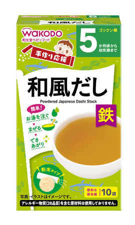 今回のリニューアルでは、離乳食作りに欠かせないだしやスープ、おみそしる等のタイプで、離乳食では不足しがちな成分である鉄を新たに配合しました。それぞれの素材の風味を生かしたやさしい味付けに仕上げています。