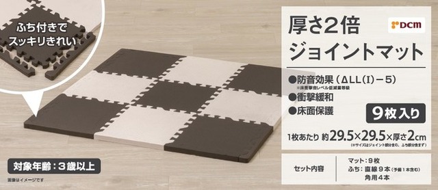 全国でホームセンター事業を展開するDCM株式会社 (東京都品川区、代表取締役社長: 石黒靖規以下、DCM)は、防音性能に優れ、様々なデザインをお選びいただける「DCM ジョイントマット」(ジョイントコルクマット 、 ジョイントパンチマット 、 ジョイント起毛マット 、 ジョイント 木目調マット 、 厚さ2倍ジョイントマット、計 5 種類)」を、2022年7月29日(金) より全国のDCMグループ店舗(DCM・DCMカーマ・DCMダイキ・DCMホーマック・DCMサンワ・DCMくろがねや及びケーヨーデイツー、一部店舗を除く)にて発売します。