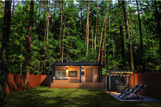 富士山の麓、木々の香りが心地よい豊かな森林に佇む定員6名の大型スイートキャビン。
