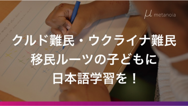 今回のクラウドファンディングでは、小さく始めたメタノイアの日本語教室へ新たに30人の難民移民ルーツの子ども若者を受け入れ、長く丁寧に日本語教育を届けていく支援を届けるための資金を募ります。