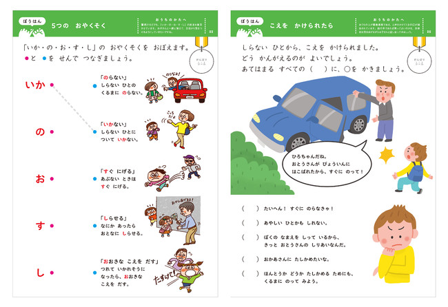 しかし教科としてまとまっていない分野のため、何をどう教えればよいか困っているご家庭も非常に多いようです。そこで大切なお子さんを守るべく、小学校入学前後に教えておきたい「おやくそく」を厳選したドリルが新登場! 一度は話し合いたい内容が盛りだくさんですので、お子さんとの会話のきっかけにしてみるのはいかがでしょうか?
