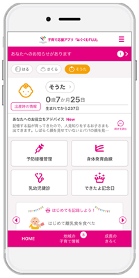 静岡県富士市に採用された『富士市子育て応援アプリ「はぐくむFUJI」』は、スマートフォン・タブレット端末・PCに対応したサービスで、妊産婦と子どもの健康データの記録・管理や予防接種のスケジュール管理、出産・育児に関するアドバイスの提供、離れた地域に住む祖父母など家族との共有機能や、市が配信する地域の情報をお知らせするなど、育児や仕事に忙しい母親や父親を助けてくれる便利な機能が充実しています。