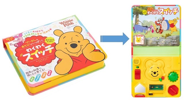 エレベーターやバスの押しボタン、リモコンやパソコンのスイッチなど、あかちゃんのまわりには触りたいものだらけ。好奇心は伸ばしてあげたいけど、外出先など公共の場では困ったもの。そんなあかちゃんが思う存分“いたずら”しても安心な知育おもちゃえほん『音が出るえほん プーさんの あそびがいっぱい! わくわくスイッチ』を発売しました。