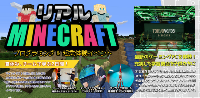 東京ヴェルディeスポーツ選手も使用する最新のゲーミングPCや大型ビジョンを用いて、世界中で大人気のゲーム「マインクラフト」を使った物づくり体験をしていただきます!