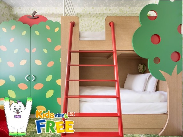 *「Kids Stay & Eat Free (キッズステイ&イートフリー)」は、ご家族の方 (大人)と同室で滞在する12歳以下のお子様の、添い寝と指定レストランでの専用キッズメニューからお選びいただくお食事が無料となるプログラムです。