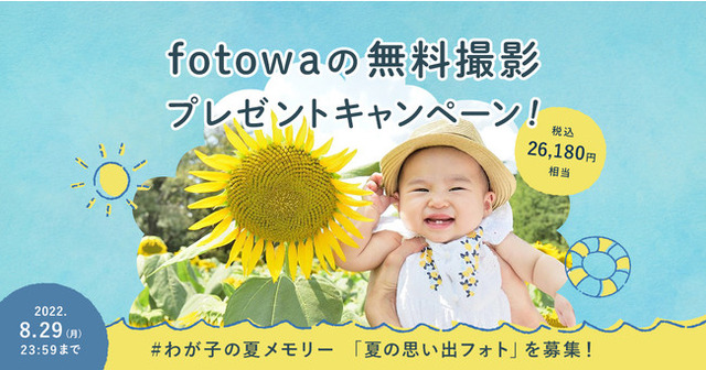 fotowaの無料撮影プレゼントキャンペーン:https://fotowa.com/campaign/summer_memories