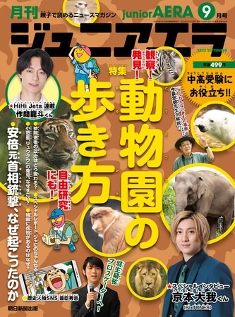 小中学生が親子で読めるニュース月刊誌「ジュニアエラ9月号」が2022年8月12日(金)に発売されました。9月号は「動物園の歩き方」を特集。このほか、「安倍元首相銃撃事件は、なぜ起こったのか」「参院選後の政治はどう変わる?」などのニュースをわかりやすく解説します。スペシャルインタビューにはSixTONES京本大我さんが登場。HiHi Jets連載は作間龍斗くんが読者のお悩みに答えます。「ジャにのちゃんねる」のレポートも! 中学受験・高校入試に役立ち、学びも楽しさもぎっしり詰まった一冊、ぜひご覧ください。