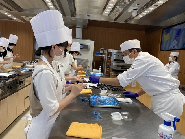 京都製菓製パン技術専門学校にはキャンパス内に「誠心軒」という茶室があり、和菓子上級科では茶道演習や書道の授業が行われています。8月20日は普段は体験することができない、この茶室でのイベントを実施します。広々とした茶室では、ふんわりと畳の香りを感じながら日常の厚さや喧騒を忘れ、一服のお茶とともに贅沢な時間が流れます。参加者には本校自慢の和菓子専用実習室でご自身で和菓子を作っていただき、その後茶室でお茶と一緒に和菓子を味わっていただきます。本校和菓子講師による茶室でのお茶のお点前ミニ講座もありますよ!京都ならではのプログラムをぜひお楽しみください。