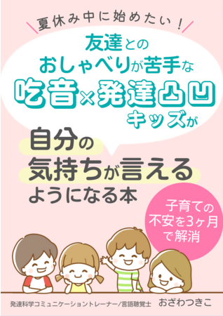 この度、家ではどもりながらもたくさんおしゃべりしているのに、外ではあまりしゃべらず自分を出し切れているか心配という吃音キッズ、発達凸凹キッズを抱えるお母さんのために、「夏休み中に始めたい!友達とのおしゃべりが苦手な吃音×発達凸凹キッズが自分の気持ちが言えるようになる本」として小冊子をリリースいたしました。