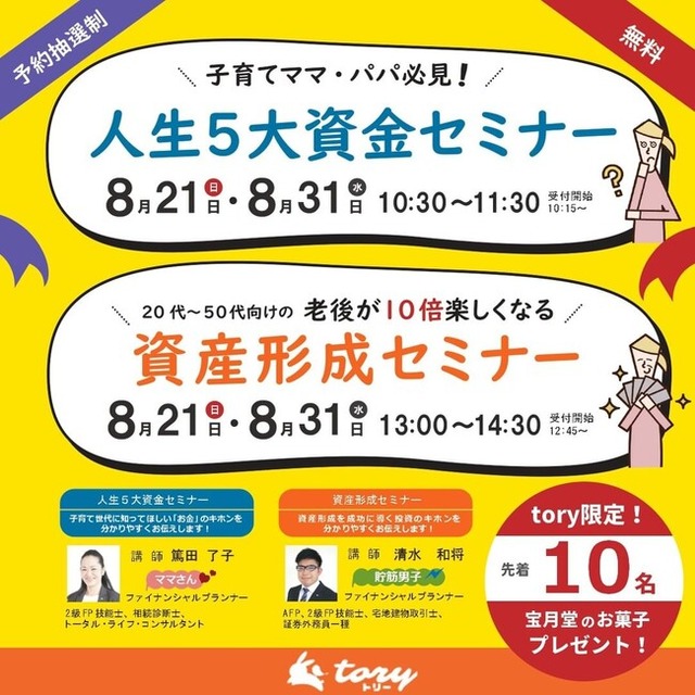 ・「人生5大資金セミナー」家庭でできる資産形成のコツが分かる