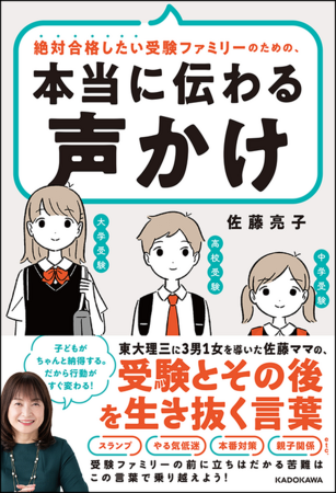 株式会社KADOKAWA(代表取締役社長:夏野剛、本社:東京都千代田区)は、2022年8月12日(金)に、“佐藤ママ”こと佐藤亮子氏の新刊『絶対合格したい受験ファミリーのための、本当に伝わる声かけ 東大理三に3男1女を導いた佐藤ママの、受験とその後を生き抜く言葉』を発売いたしました。