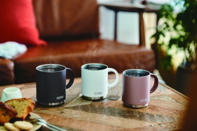 コロナ禍によるおうち時間の増加を受け、『真空断熱タンブラー』や『真空断熱マグカップ』などのサーモスの卓上用 製品の売り上げが伸長しています。 ビアグラス形状の『真空断熱タンブラー』はアルコール飲 料での使用が多い製品ですが、ハンドル付きの『真空断熱マ グカップ』は、リラックスタイムや仕事、勉強などのシーン で、主にコーヒーやお茶などを入れてご利用いただいており ます。ステンレス製魔法びん構造で温かさ・冷たさが長持ち するうえに結露もしにくいため、テレワークを快適にするアイテムとしても注目されています。