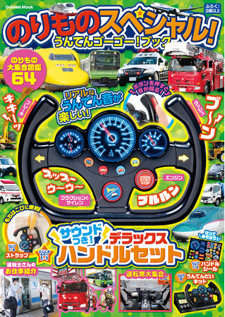『のりものスペシャル!』は、豪華ハンドルおもちゃが付録の親子で楽しめるムック本。付録のハンドルは、ボタンを押すとリアルな運転サウンドが楽しめる! ハンドルをかっこよく飾れるシールに、持ち運びに便利なストラップバンドつきのデラックスなセットだ! 付録の運転台キットと組み合わせれば、楽しい運転遊びもできちゃうぞ☆