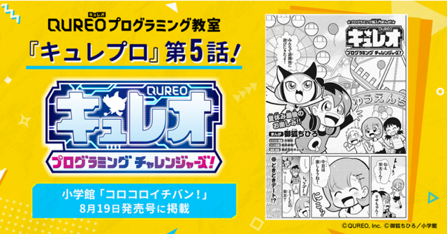 株式会社CA Tech Kidsと株式会社スプリックスとの合弁会社で、プログラミング教材の開発・運営・販売事業を行う株式会社キュレオ(本社:東京都渋谷区、代表取締役社長:上野朝大)は、運営する子ども向けプログラミング教室「QUREO(キュレオ)プログラミング教室」https://qureo.jp/ が全面監修するプログラミング学習マンガ『キュレオ プログラミングチャレンジャーズ!(通称:キュレプロ)』の最新回となる第5話の内容をお知らせいたします。第5話が掲載される、小学館「コロコロイチバン!」8月19日発売号の本誌ページの一部も公開いたします。