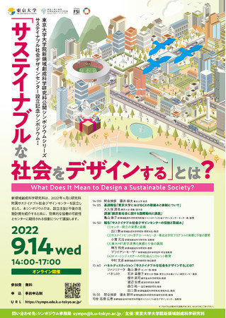 東京大学大学院新領域創成科学研究科は、2022年9月14日(水)に公開シンポジウム“「サステイナブルな社会をデザインする」とは?”を オンラインにて開催します。
