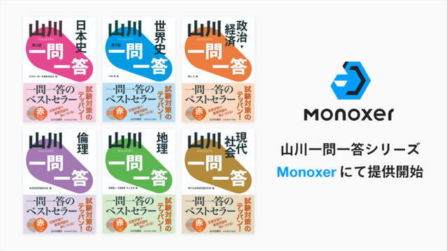 モノグサ株式会社(東京都千代田区 代表取締役:竹内孝太朗、畔柳圭佑)は記憶定着のための学習プラットフォーム「Monoxer(モノグサ)」が、株式会社山川出版社(東京都千代田区 代表取締役:野澤武史、以下山川出版社)よりライセンスを受け、Monoxer上で山川一問一答シリーズの日本史、世界史、地理、現代社会、倫理、政治・経済を導入教室に向けて2023年4月1日(土)よりリリースすることをお知らせいたします。