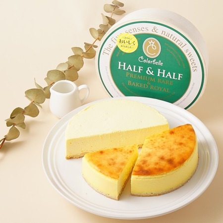 カラベル人気の『プレミアムレアチーズ』と『ベイクドロワイヤル』が一度に楽しめるハーフ&ハーフのセットです。