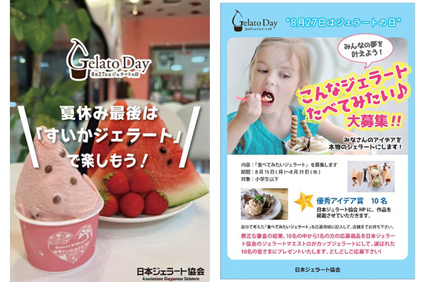 8月27日は「ジェラートの日」。年に1度のジェラートのお祭りに、日本ジェラート協会では、会員統一メニューとして「すいかジェラート」をご提供、また子供たちの夏休み最後の思い出に「あなたの夢を叶えます!こんなジェラート食べてみたい!!」大募集キャンペーンを行います。