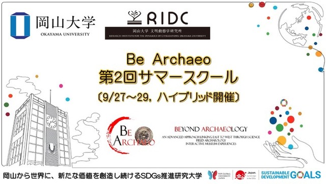 Be Archaeo 第2回サマースクールを、2022年9月27~29日に、岡山大学津島キャンパス(岡山市北区)文法経講義棟20番講義室とオンラインのハイブリッドで開催します。