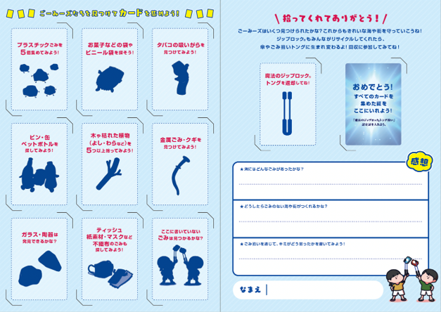 ※21日(日)以降は、トングの貸し出しとゲーム用台紙、 GOMISカードの配布のみとなります。「魔法のトング使い認定証」、「カードケース」の提供はございません。